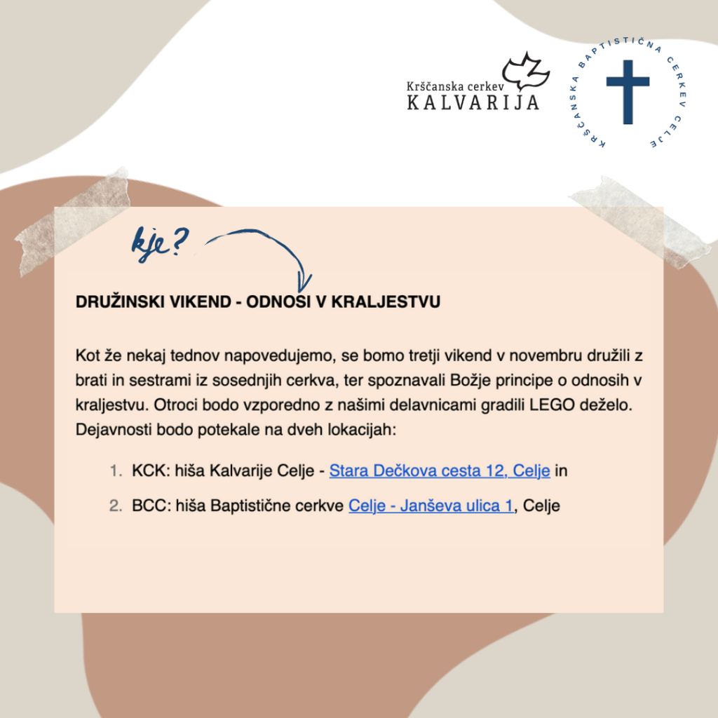 Vabljeni na družinski vikend, ki bo v petek, 18. 11. in v soboto, 19. 11.!